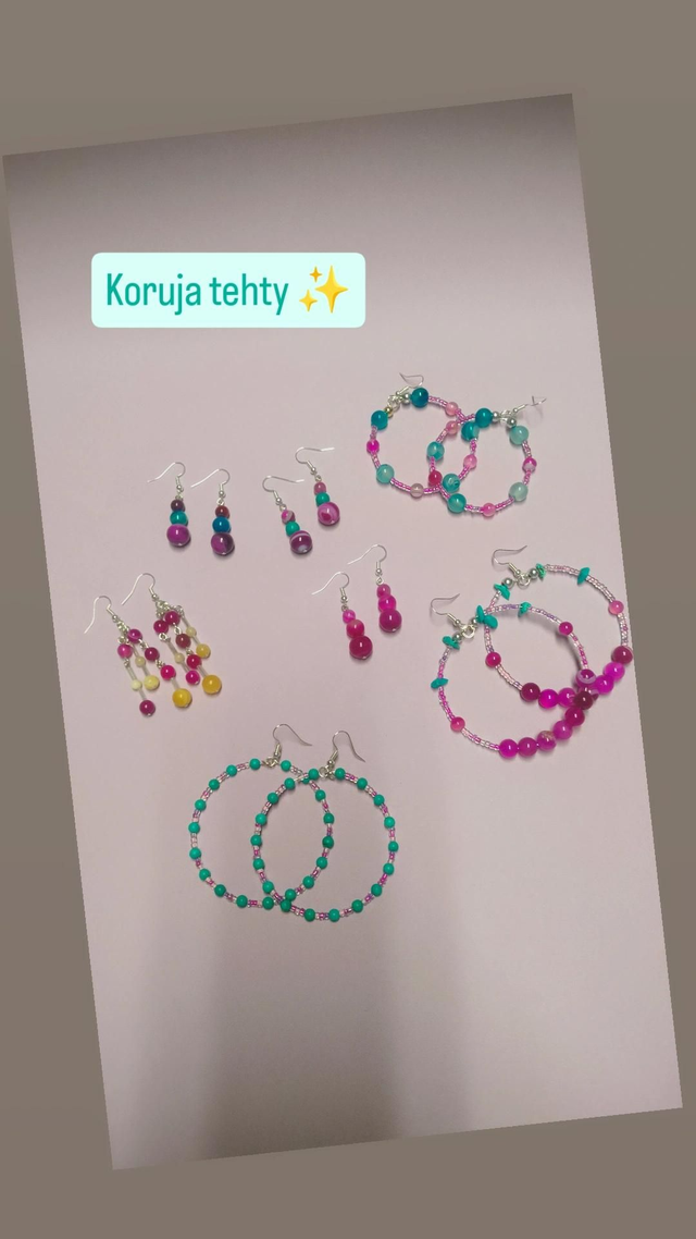 Pinkki Akaatin ja Turkoosi Howliitin eri kokoisista helmistä koottu vähän yli 4 cm pituiset korvakorut tuovat pilkettä päivään. Jokainen Helmi on tarkkaan valittu ja Pinkki Akaatin yksilökohtaiset helmet ovat kuin taideteos.